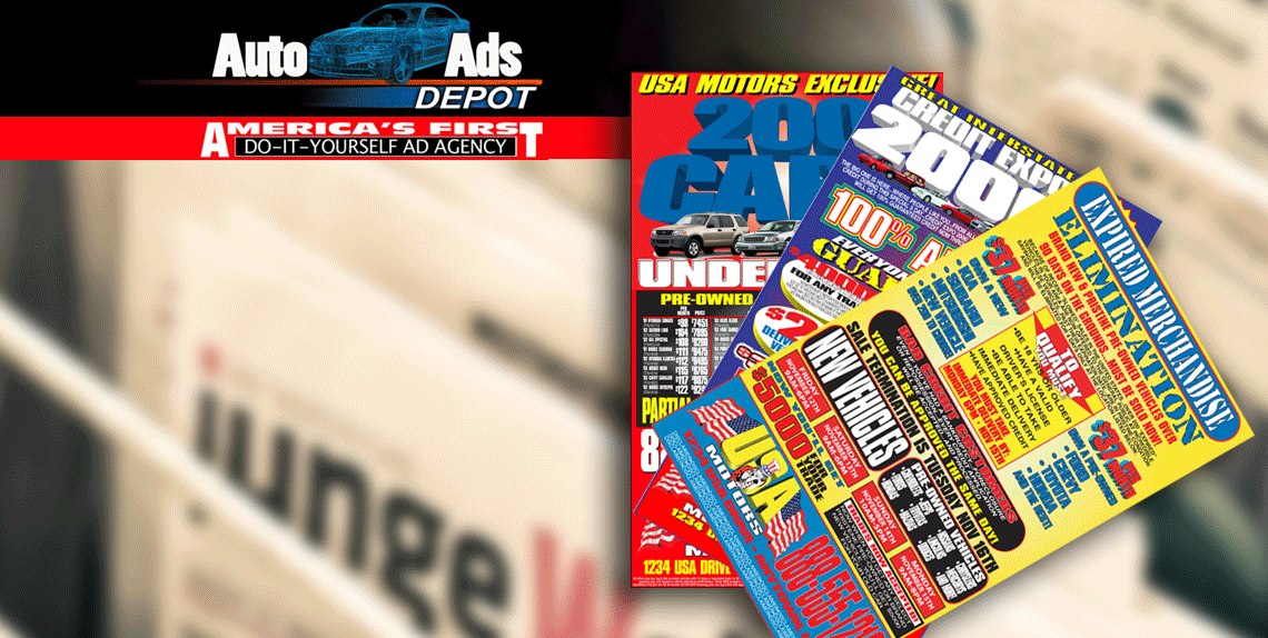 Don’t leave it up to your local newspaper. Order your newspaper ad from AutoAdsDepot.com and you’ll have all of the explosive headlines, creative hooks and explosive graphics you’ll need to crush the competition’s ads. And, production of your newspaper ad by AutoAdsDepot.com is only $175.